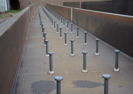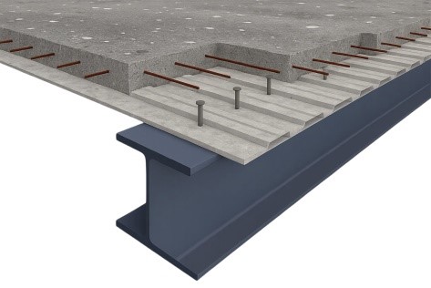 Стержневые упоры позволяют создавать качественные композитные конструкции, представляющие собой сочетание стальных каркасных балок с наружной отделкой из железобетона. Упоры, приваренные к стальной балке каркаса, служат закладными деталями при последующем бетонировании, являясь частью арматурного каркаса железобетонной части композитной конструкции.