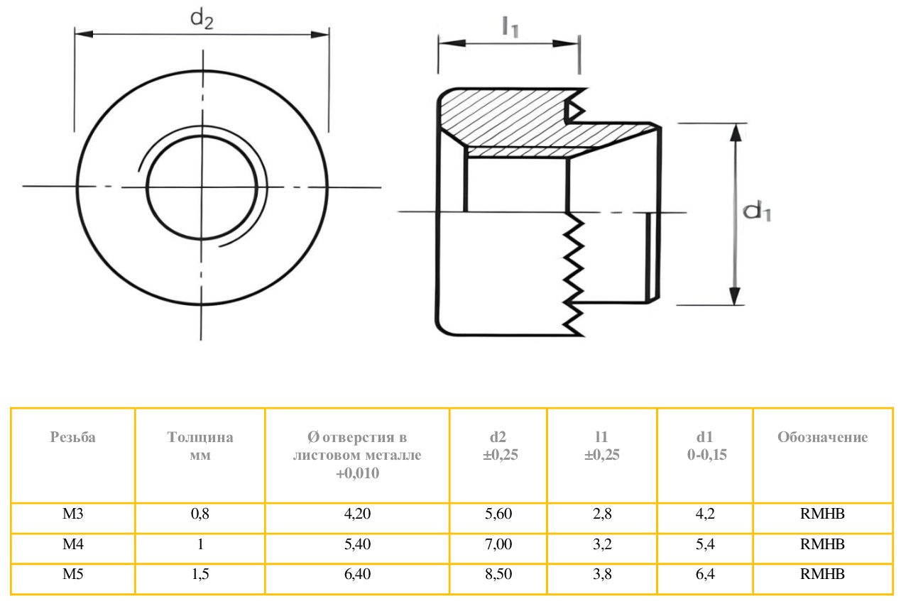 RMHB-M3-20 GS Гайка развальцовочная резьбовая нержавеющая сталь