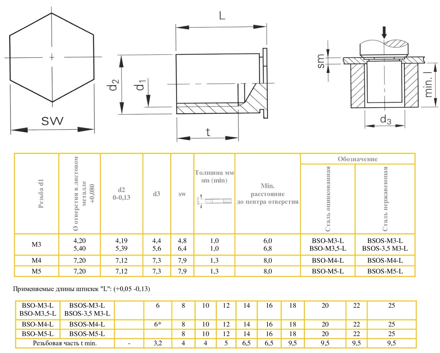 Запрессовочные втулки из оцинкованной стали c увеличенным наружным диаметром, применяются для создания резьбовой точки крепления в тонколистовом металле, предназначены для высоких нагрузок до HB150.