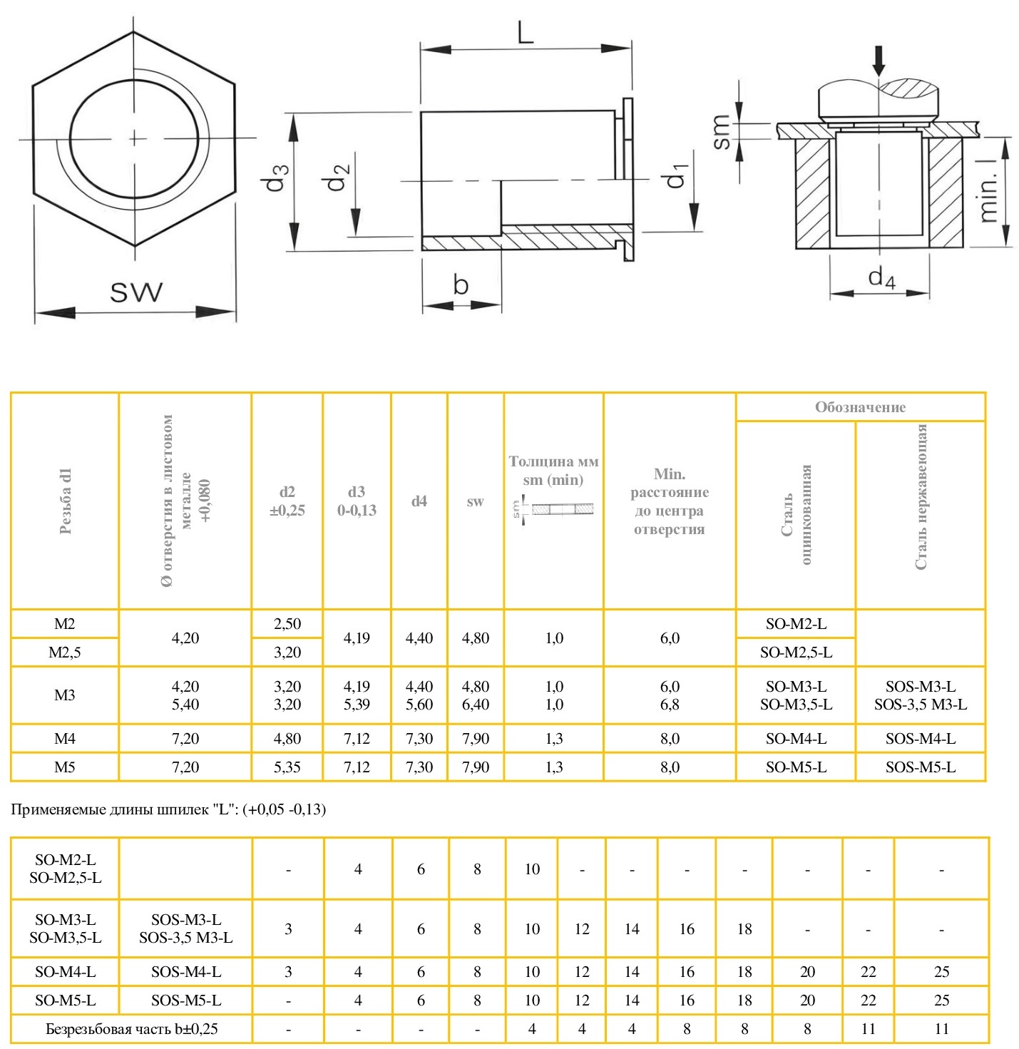 SOS-M4-3 Втулка резьбовая запрессовочная проходная нержавеющая сталь
