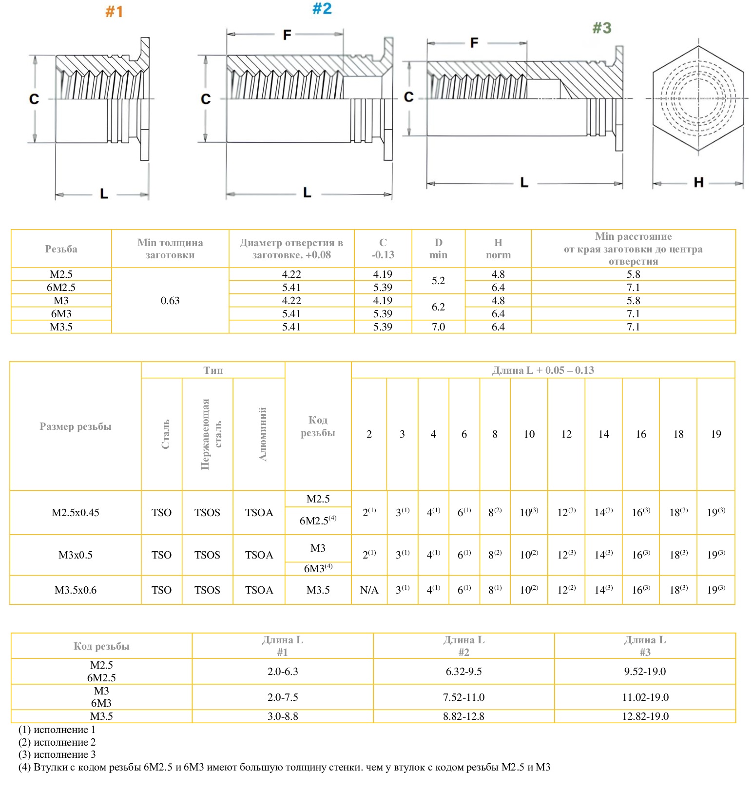 TSO-M2,5-08 Втулка резьбовая запрессовочная М2,5х8
