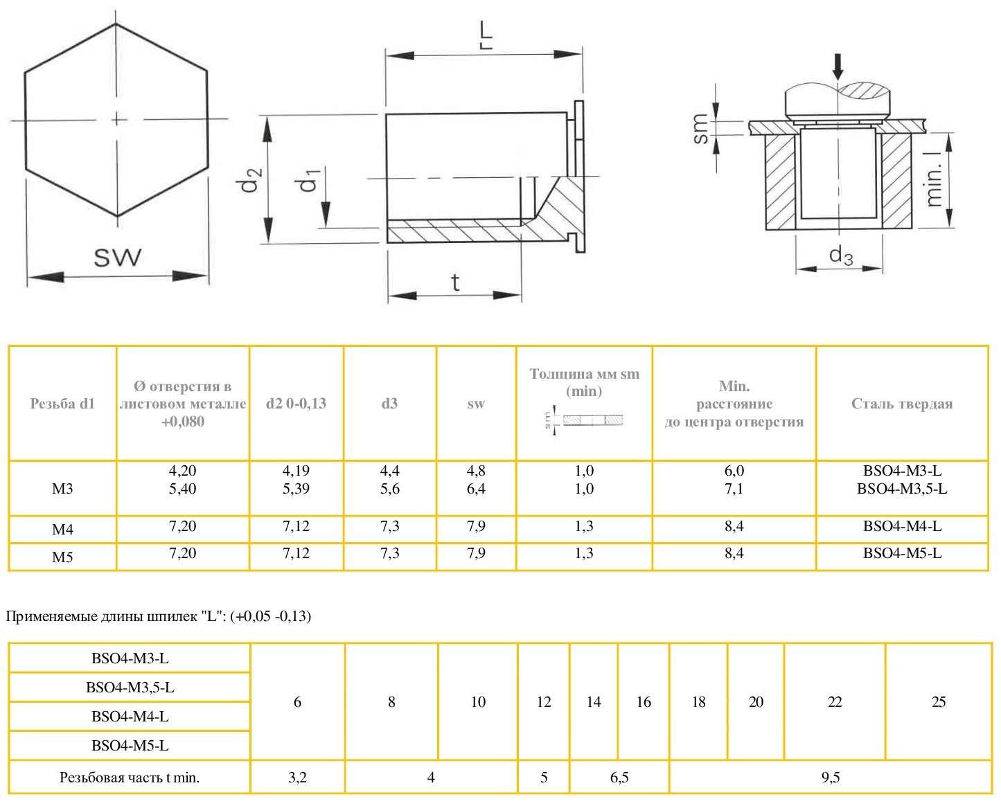 Запрессовочные втулки из нержавеющей стали применяются для создания резьбовой точки крепления в тонколистовом металле, используются для материалов твердостью до HB 175.